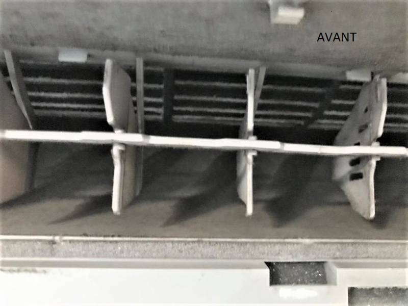 - Encrassement du rouleau de ventilation et de l'échangeur (visible en ouvrant les ailettes)