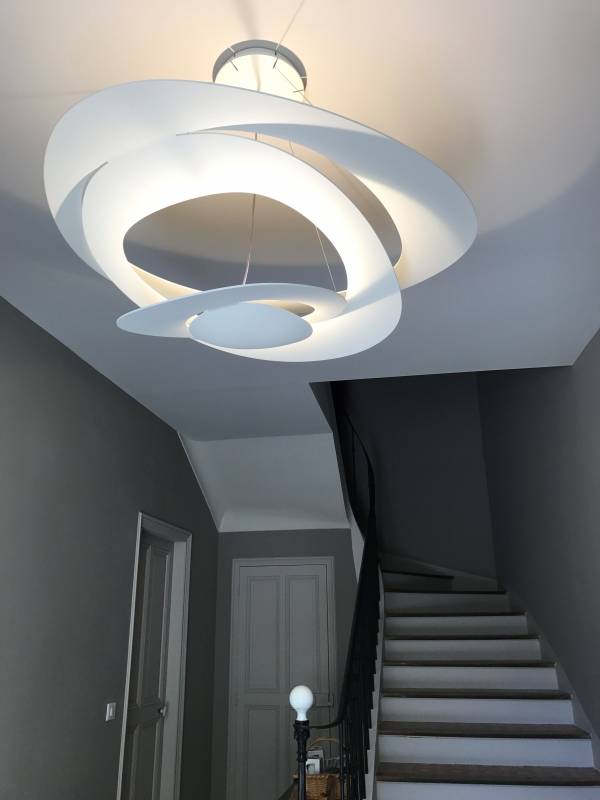 L'entreprise Dell'Anna électricité plomberie chauffage et son équipe vous présente l'aménagement d'une maison en électricité et pose de luminaires sur Maubec dans le Vaucluse. Le client très soucieux des détails et finitions nous a confié la rénovation en électricité de sa maison, les éclairages Led de la cuisine en bandeau, les spots encastrés pour le dressing apporte un éclairage doux et chaleureux et une touche de modernité. La suspension et les appliques de la marque Artemide leader européen du luminaire design ainsi que le plafonnier Flos, apporte une ambiance cosy et une décoration contemporaine.