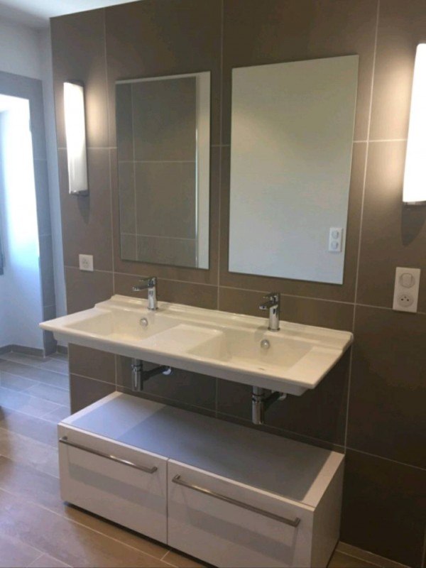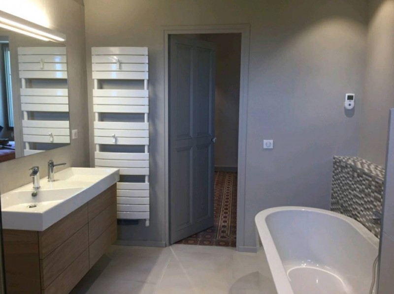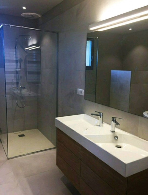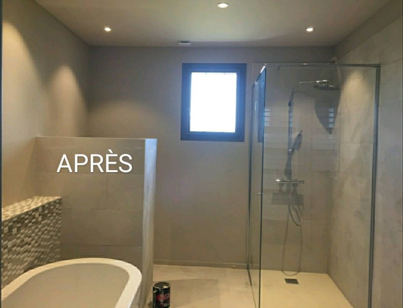 L'entreprise Dell'Anna électricité plomberie chauffage et son équipe vous présente la rénovation de salles de bain, avec douche à l'italienne, meubles double vasques et baignoire en îlot. Une des salles de bain étant en longueur et plutôt étroite, nous avons dû optimiser les espaces. Après avoir défini l'emplacement de la baignoire en îlot, la difficulté était de pouvoir intégrer l'alimentation en eau chaude et froide, nous avons pu les mettre dans un coffrage derrière la baignoire, une fois carrelé il s'intègre parfaitement à la salle de bain et met en valeur la baignoire îlot.